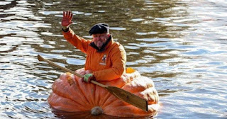 it a bummer when you think you've grown the world biggest pumpkin then someone beats you out with a bigger one. So rick Swenson set another record rowing a giant pumpkin as our fans Tyler and Ally M just shared wit us ricks hubby grow not one but tow 1,400 pound pumpkin . Together they weighed as much as a car. So rick took it one step further. he cut his own 1,00 pound pumpkin in scooped out the slimy seeds plopped it in the red rive and climbed in. As he rowed down the rive a friend texted to tell him that someone has just set a new pumpkin paddling record of 15 miles. So rick paddled for almost 14 hours to row25 3/5 miles setting a new record. The question is who rode the other half of that pumpkin. If rick grew 1 giant pumpkin and his field grew 2 giant pumpkin how many did they grow in total 3 giant pumpkin After rick rick rowed the 3 miles what numbers would you say for the next 5 miles he rowed 4,5,6,7,8 The pumpkin boat was 2 1/2 feet wide If you lay across it would your feet hang over the edge Differ for everyone find out if you're more than2 1/2 feet tall. ricks tips took 13 hopes 4 minutes If he started rowing at 7:30 am that day when did he stop (hint if needed what if he had rowed fo just 12 hours at 9:10 pm. If he cut that 1,00 pumpkin exactly in half how much did his boat weigh 55o pounds about the same as a mall horse. for called book bedtime math